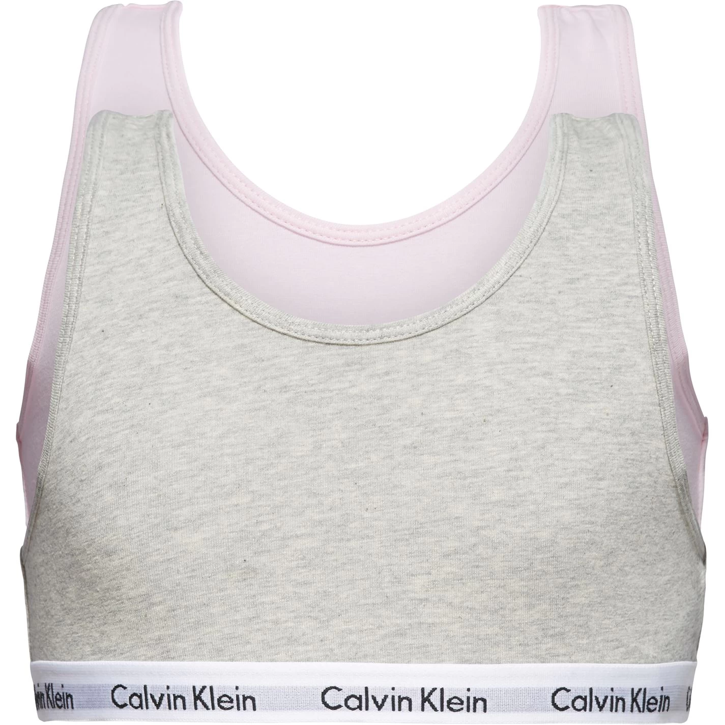 Add a designer flourish to your little girl`s essentials collection with this pack of two bralettes by Calvin Klein Underwear. Crafted from a stretch cotton fabric, it is finished with brand lettering for a signature appeal. Expertly created for her comfort, it is a must-have design for her growing wardrobe.