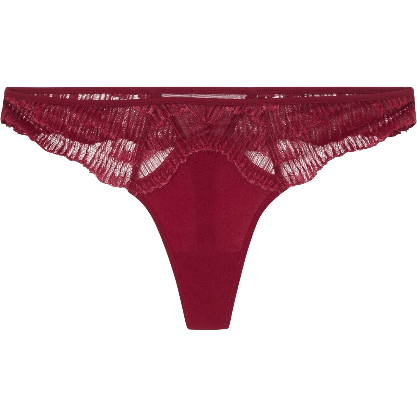 Add a feminine touch to your lingerie with the Calvin Klein Linear Lace Thong. Styled in a thong silhouette, this pair are defined with a delicate lace trim to the upper waistband while the soft-touch fabrication offers a comfortable feel. Pair yours with the matching Lace Underwired Bra.