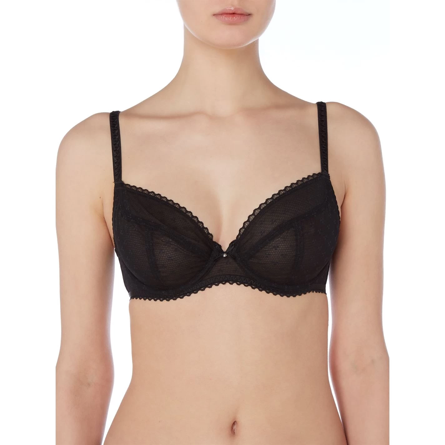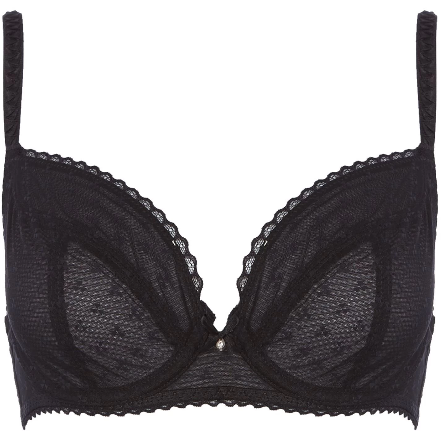 Lend an alluring appeal to your lingerie collection with this Courcelles plunge bra by Chantelle. Made from a smooth and stretchy fabric, it boasts adjustable shoulder straps and a hook-eye fastening at the back to ensure a perfect fit. Beautifully adorned with lace detailing and a diamante trim on the front to exude a feminine aesthetic, this padded bra is a versatile choice to suit your changing wardrobe.