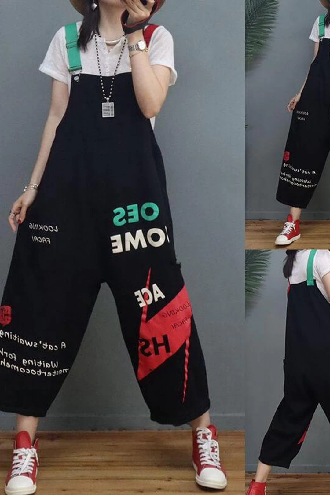 Denim Hole Letter Women Casual Pocket Jumpsuits Dungarees