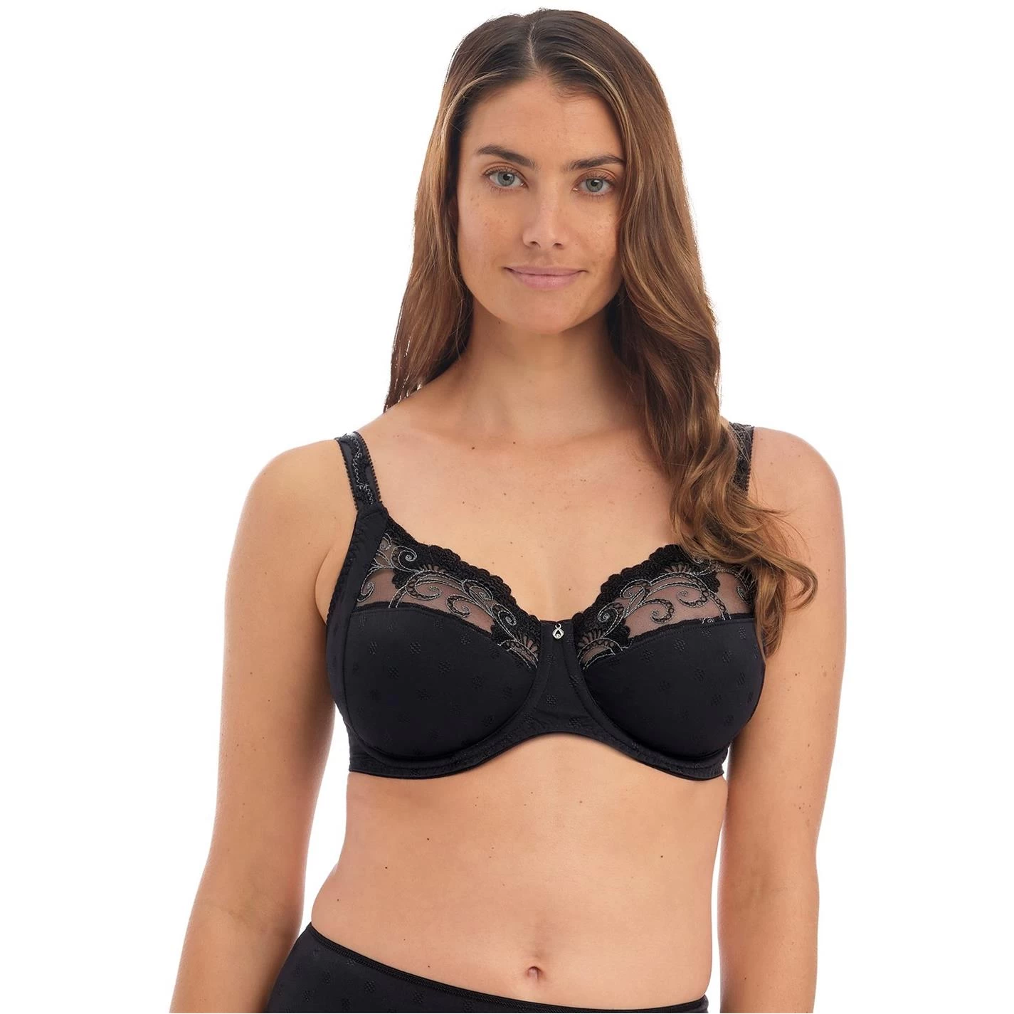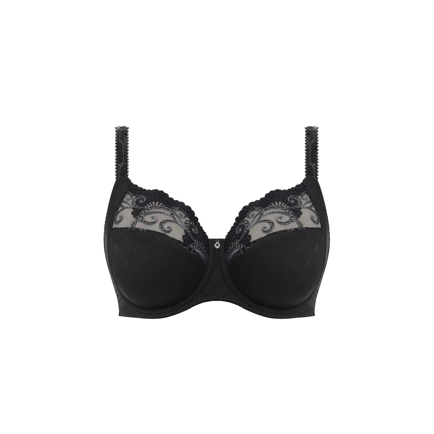 Jocelyn features a full cup style with a subtle two tone Austrian designed embroidery in a swirling nouveau inspired pattern on the top of the cups. The side support shape is wide wired for additional comfort and support and gives more coverage in the cup and underarm. The concealed inner cup construction offers great uplift, shape and a forward projection. The bottom cup is seamless featuring a soft jacquard spot design offering a smooth silhouette under clothing. The central pull straps combine comfort and innovation with an angled ring to offer more flexibility through the straps and to prevent strap slippage. With comfort at the foundation of this bra combined with the soft peach skin shoulder straps and soft hook and eye, it makes this an everyday staple. Finished with a metallic trim with diamante detail at centre front. Why not try these bras with our smoothease briefs to coordinate.