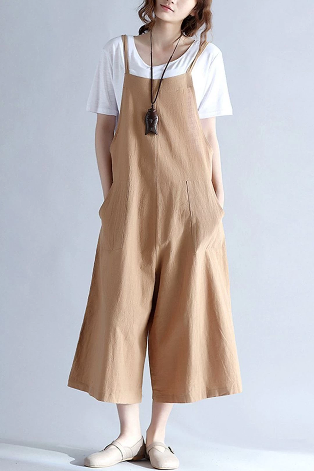 FantasyLinen Linen Casual Loose Overalls, Cotton Plus Size Jumpsuit P10010