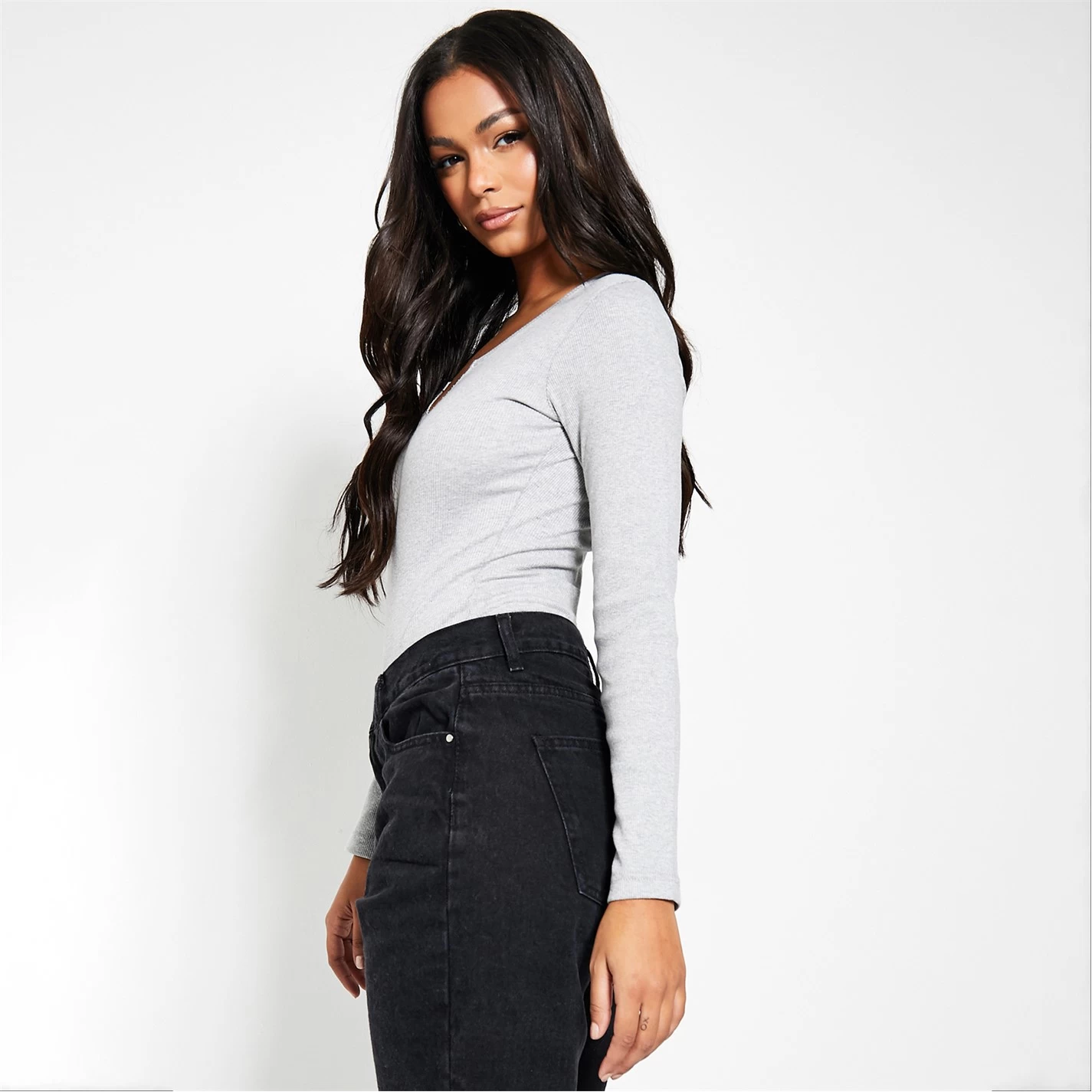 I Saw It First Cotton Rib Notch Front Long Sleeve Bodysuit