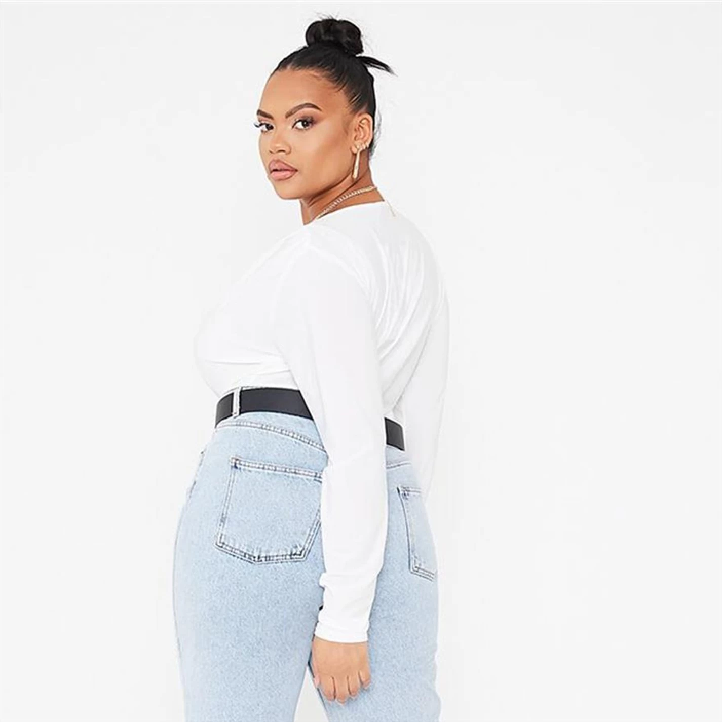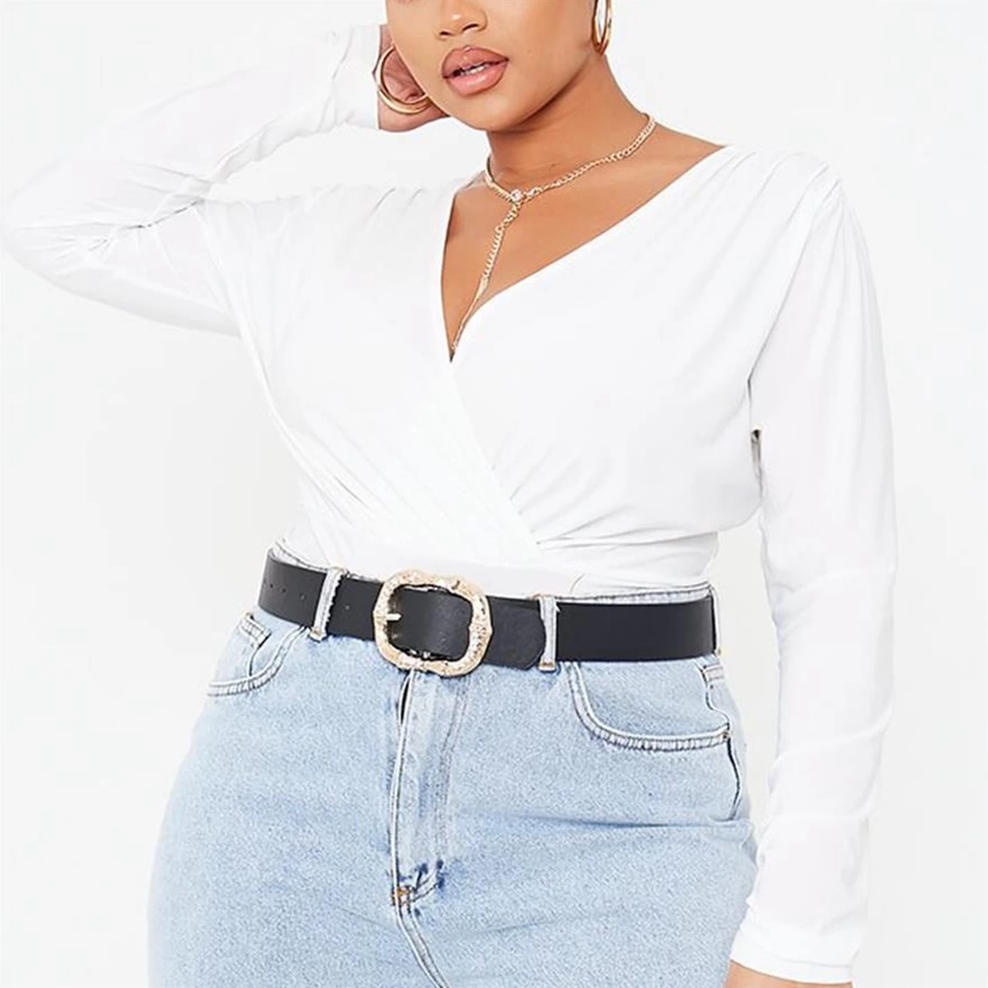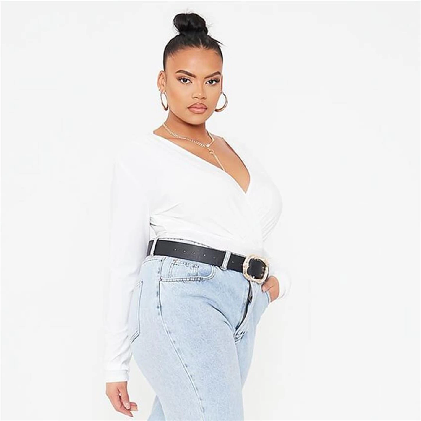 I Saw It First Plus Size Long Sleeve Plunge Wrap Bodysuit