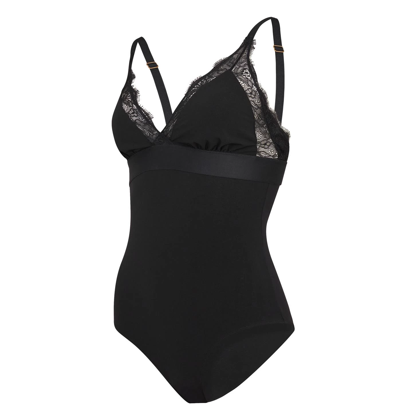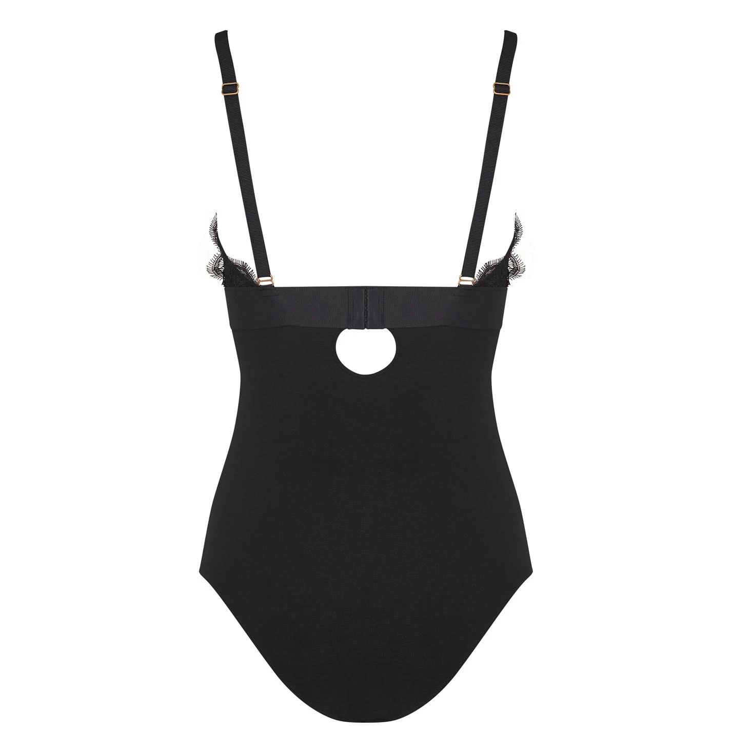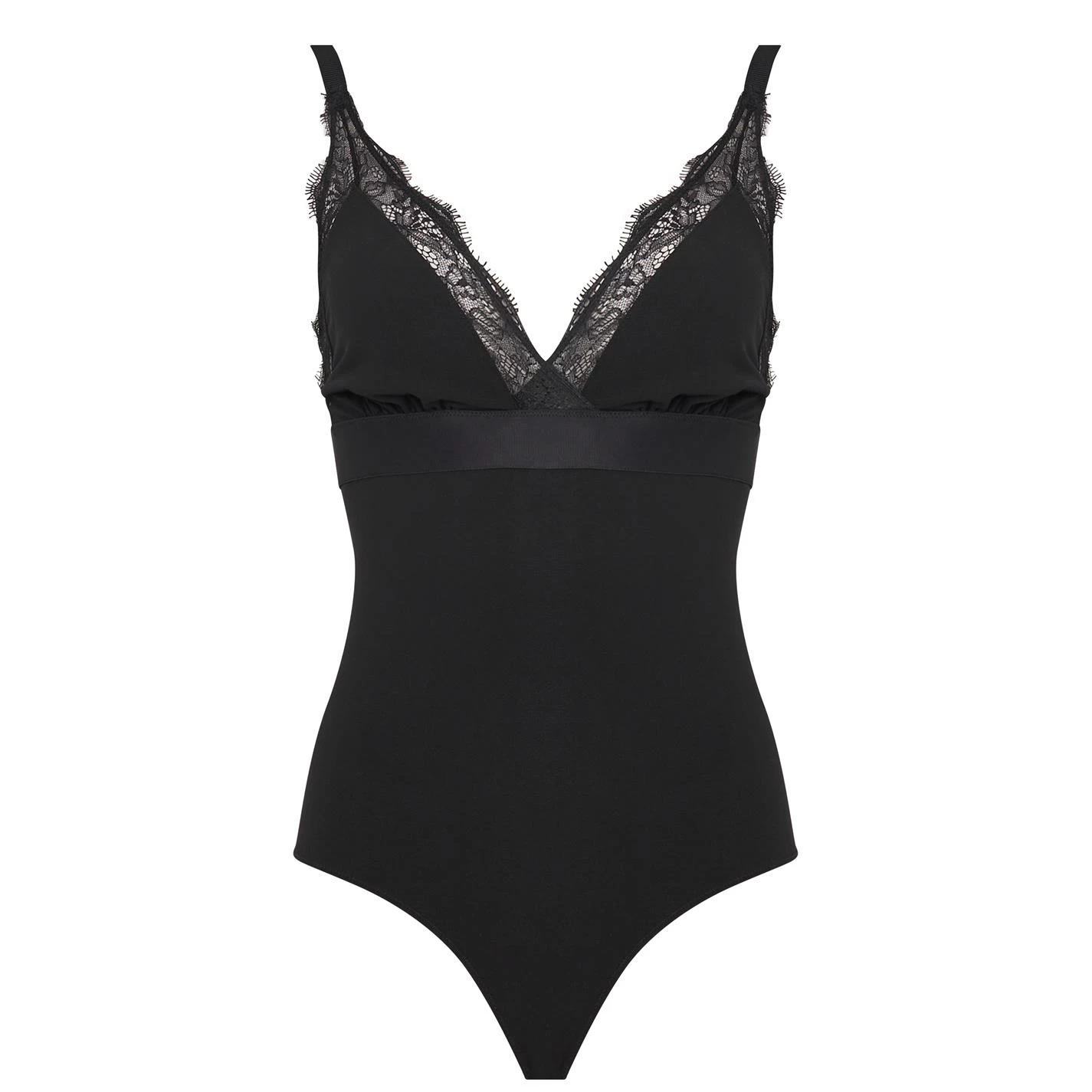 Add a sultry piece to your lingerie with the Doris Bodysuit from love Stories. Designed with triangle cups and adjustable straps for comfort, this body is made from soft stretch fabric for all day comfort. With a snap closure to the bottom and a hook and eye closure to the back, this body is finished with a scalloped floral lace outlining the cups.