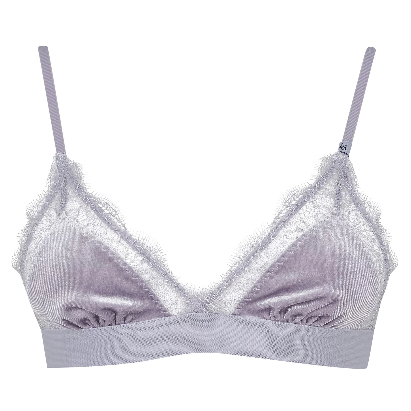 Refresh your lingerie with the Love Lace Bralette from love Stories. Designed with triangle cups, this bralette offers a gathered detail to the underband and adjustable spaghetti straps for a comfortable wear. With a hook and eye closure to the back this bralette is finished in a soft velvet fabric with a scalloped eyelash lace trim surrounding the cups.