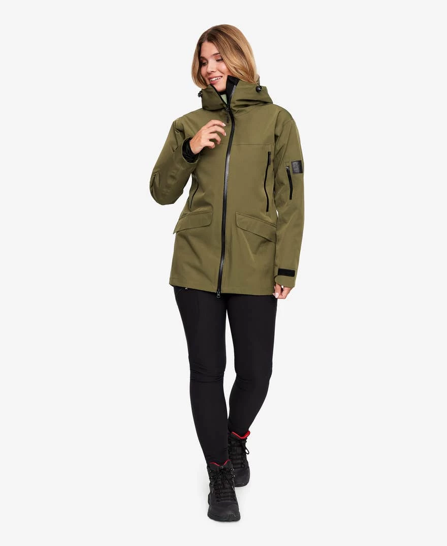 The Monsoon Jacket is a longer, 2-layered shell jacket developed to stand up against the weather without compromising style. A waterproof Hypershell® Performance membrane, in combination with fully taped seams, YKK® AquaGuard zippers, and a DWR finish, helps keep out any moisture. The helmet-compatible hood is adjustable in two ways and features a reinforced visor. Ventilation zippers at the armpits allow you to cool down during intense activities. No less than eight smart pockets, including three inner pockets, keeps your personal items safe during all outdoor adventures. The Monsoon is an all-around jacket ideal for outdoor activities in varied weather and can be worn as either a standalone shell or combined with an insulating layer during colder days.