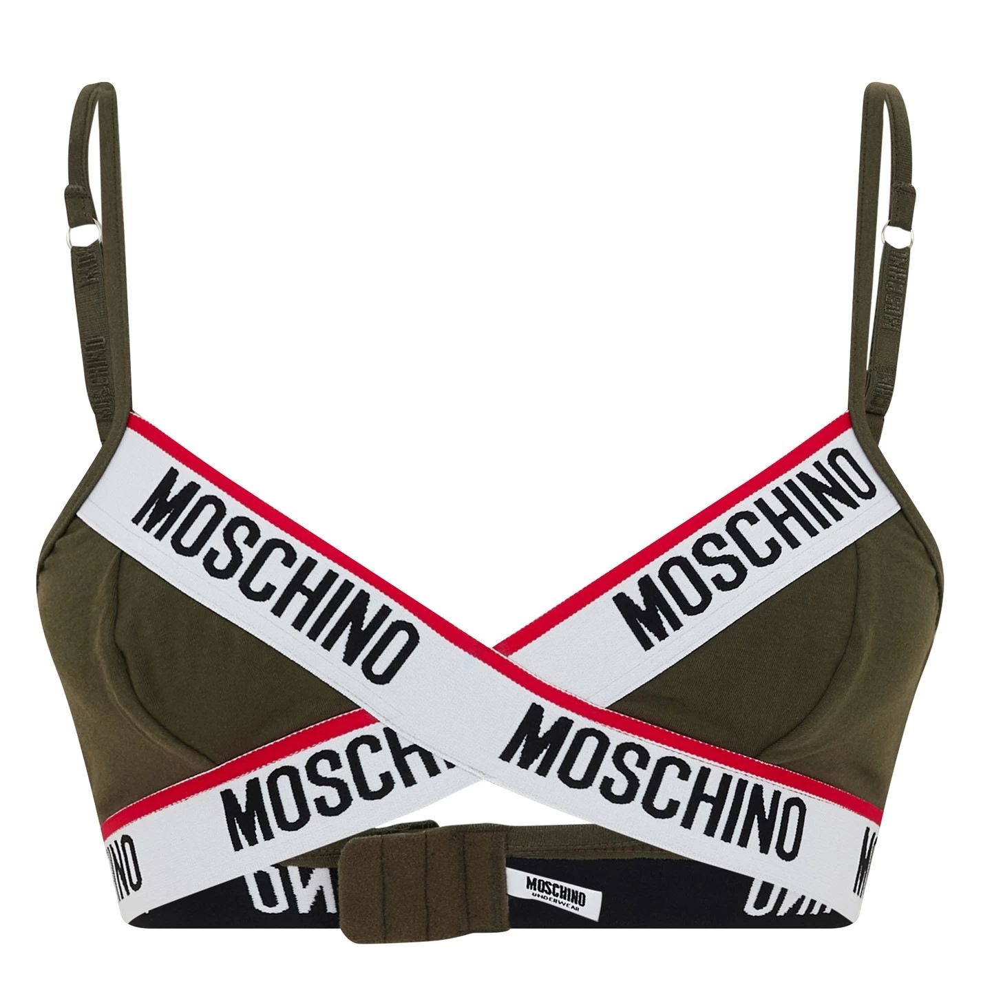 Refresh your everyday accessories with the Band Logo Triangle Bra by Moschino. Crafted with a premium cotton fabrication with a hook and eye fastening and adjustable straps that allows for all day comfort. The classic Moschino logo to the elasticated trim to the chestband and cups completes the stylish look.