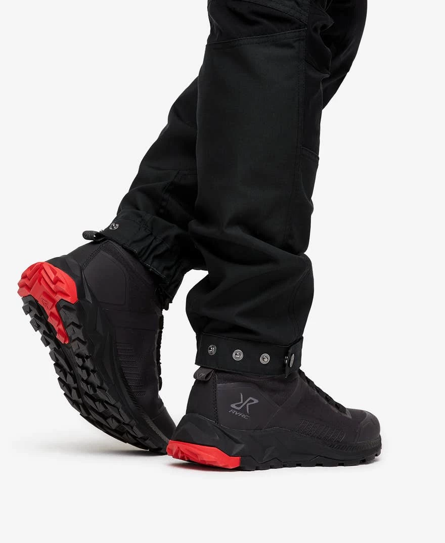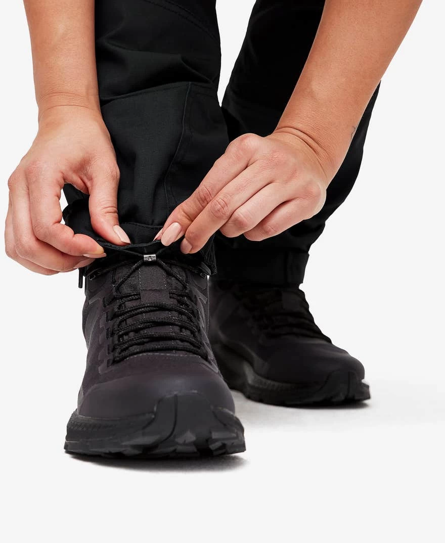 The Nordwand Pro Pants are a pair of multifunctional and stretchy outdoor pants for hiking and other outdoor activities demanding high flexibility. Made from PFC-free Hypershell® material, these pants are both wind- and water-repellent with ventilation zippers at the thighs for added breathability. The 4-way stretch panels over the seat, knees and hips, along with the pre-bent knee design, allow for a greater range of movement and comfort. These pants are built to last, with reinforced areas on the thighs and lower legs to prevent damage from heavy use. They also feature boot hooks at the leg ends, keeping the pants securely in place during any activity. Additionally, the Nordwand Pro Pants have five pockets for convenient storage and adjustable leg endings with buttoned closures for a customizable fit.