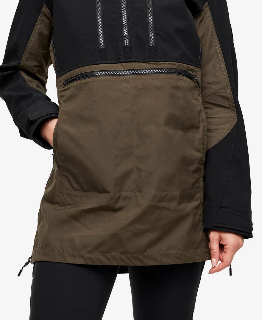 The Outdoor Anorak is the perfect hiking anorak made in a durable Hypershell® and with deep zips for easy on-and-off. Its reinforced material combined with a stretchy, waterproof softshell makes it super strong and flexible at the same time. This anorak has two zippered chest pockets, two hand pockets, one kangaroo pocket, and a pocket at the back. The hood and waist are adjustable for an optimal fit regardless of activity. Additionally, the reinforced parts of the Outdoor Anorak are pre-waxed for extra water repellency.