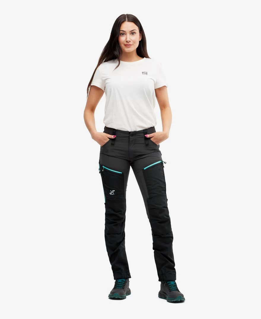 The RVRC GP Pro Pants are a pair of highly durable, multifunctional outdoor pants designed to last in harsh outdoor settings. Made with PFC-free Hypershell® material, these pants are both wind- and water-repellent. Durable reinforcements over the thighs, lower legs, and seat add extra strength and protect against wear and tear. The 4-way stretch panels at the top, inside thighs, and behind the knees ventilate and provide incredible comfort. Thigh ventilation with zippers comes in handy when you’re getting too hot.