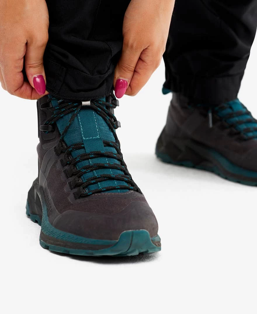 The pants feature pre-bent knees with pockets for knee pads and six pockets for storing personal items. The elastic leg ends are adjustable with buttoned closure for a comfortable fit. Overall, these pants are perfect for hiking and other high-intensity outdoor activities offering an outstanding balance of functionality, durability, ventilation, and comfort.