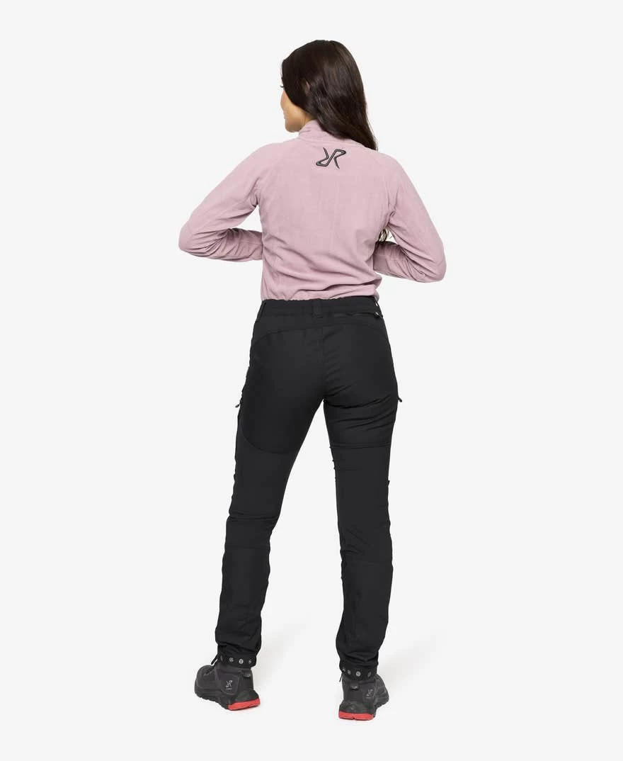 The RVRC GP Pro Pants are a pair of highly durable, multifunctional outdoor pants designed to last in harsh outdoor settings. Made with PFC-free Hypershell® material, these pants are both wind- and water-repellent. Durable reinforcements over the thighs, lower legs, and seat add extra strength and protect against wear and tear. The 4-way stretch panels at the top, inside thighs, and behind the knees ventilate and provide incredible comfort. Thigh ventilation with zippers comes in handy when you’re getting too hot.