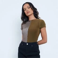 I Saw It First Wavy Double Layer Slinky Spliced Short Sleeve Bodysuit