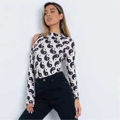 I Saw It First Yin Yang Print Cut Out Long Sleeved Bodysuit