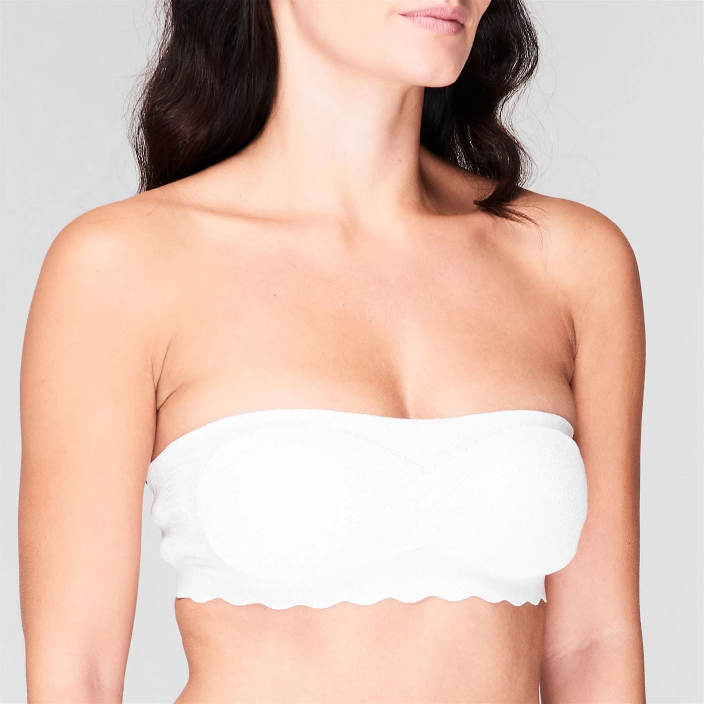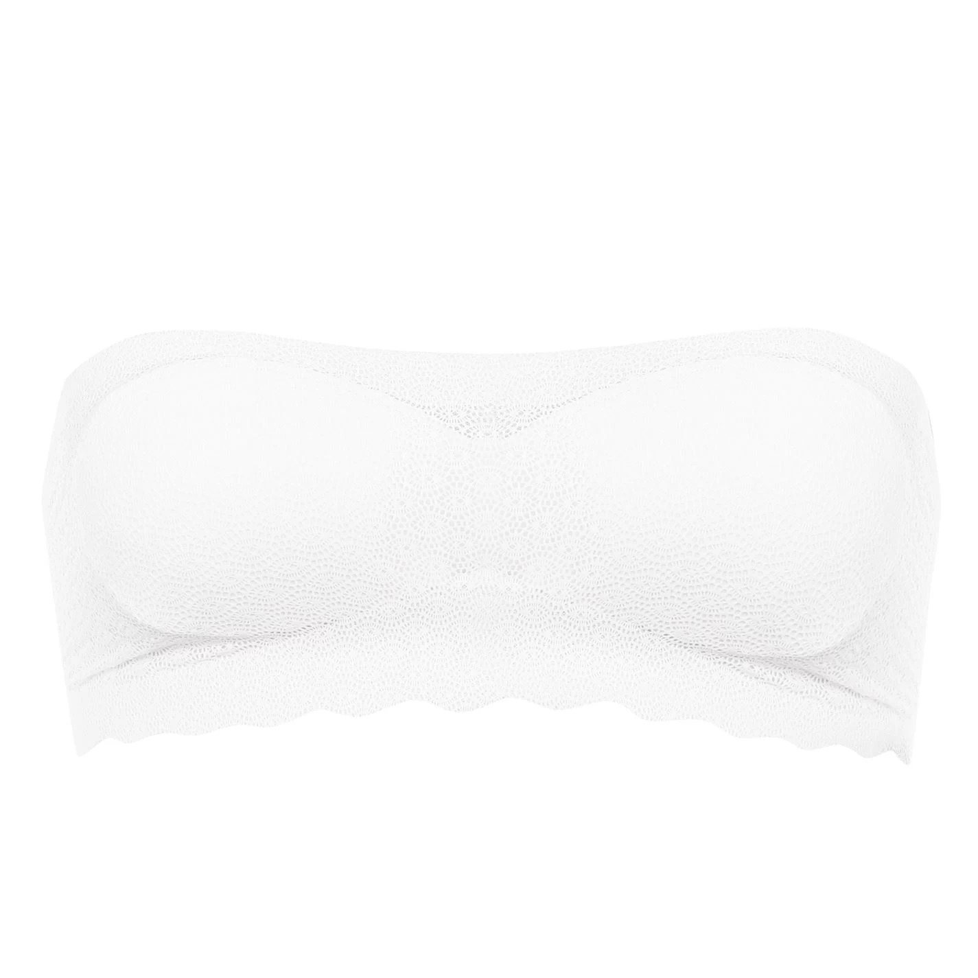 Upgrade your wardrobe with this beautiful lace bandeau bra without under-wire, this top is comfortable and almost invisible as it has no visible lines. The seamless processing of the material prevents annoying rubbing and the removable pads emphasize the natural shape thanks to the stretch material that also has no back fastening.
