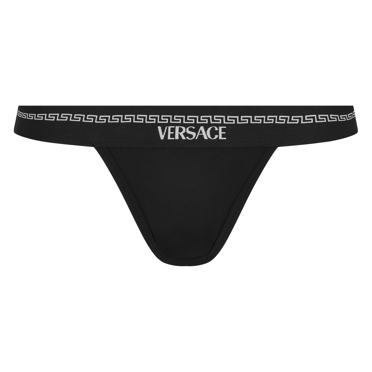 Enhance your collection with this Essential Triangle Thong from Versace. Constructed from a premium polyamide mix in a classic triangle silhouette, it features an elasticated waist and flat lock seams to prevent irritation and offer a comfortable wear. Decorated in a solid colouring throughout with the iconic logo embroidered to the band along with the Grecian detailing for a show of brand loyalty.