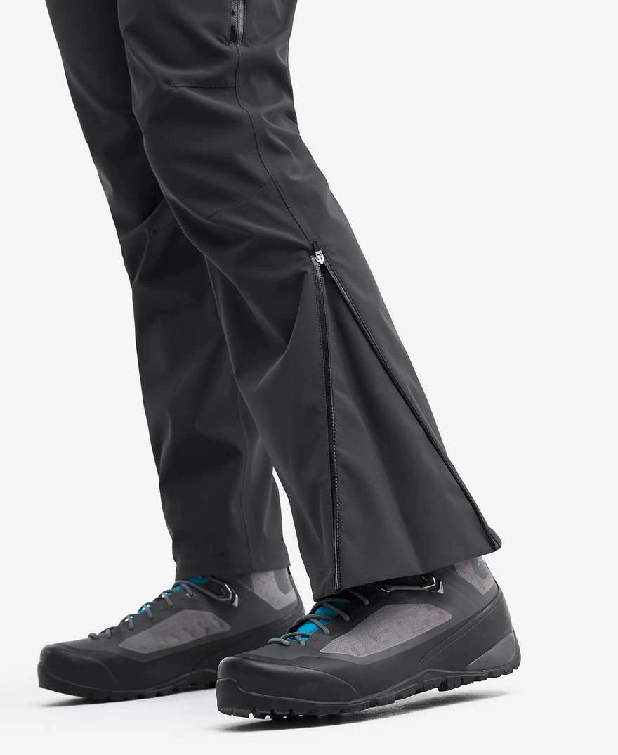 The Whisper Pants are water and windproof shell pants designed for year-round use. Thanks to a durable stretch weave, they are silent. The Whisper Pants are perfect for hiking during rainy summer days and as alpine pants during wintertime. The zippers in the leg opening are made to fit snug over your hiking boots when closed and to fit over alpine boots when opened. They have two hand pockets with water-resistant zipper closings. Use them as a weatherproof outer layer year-round.