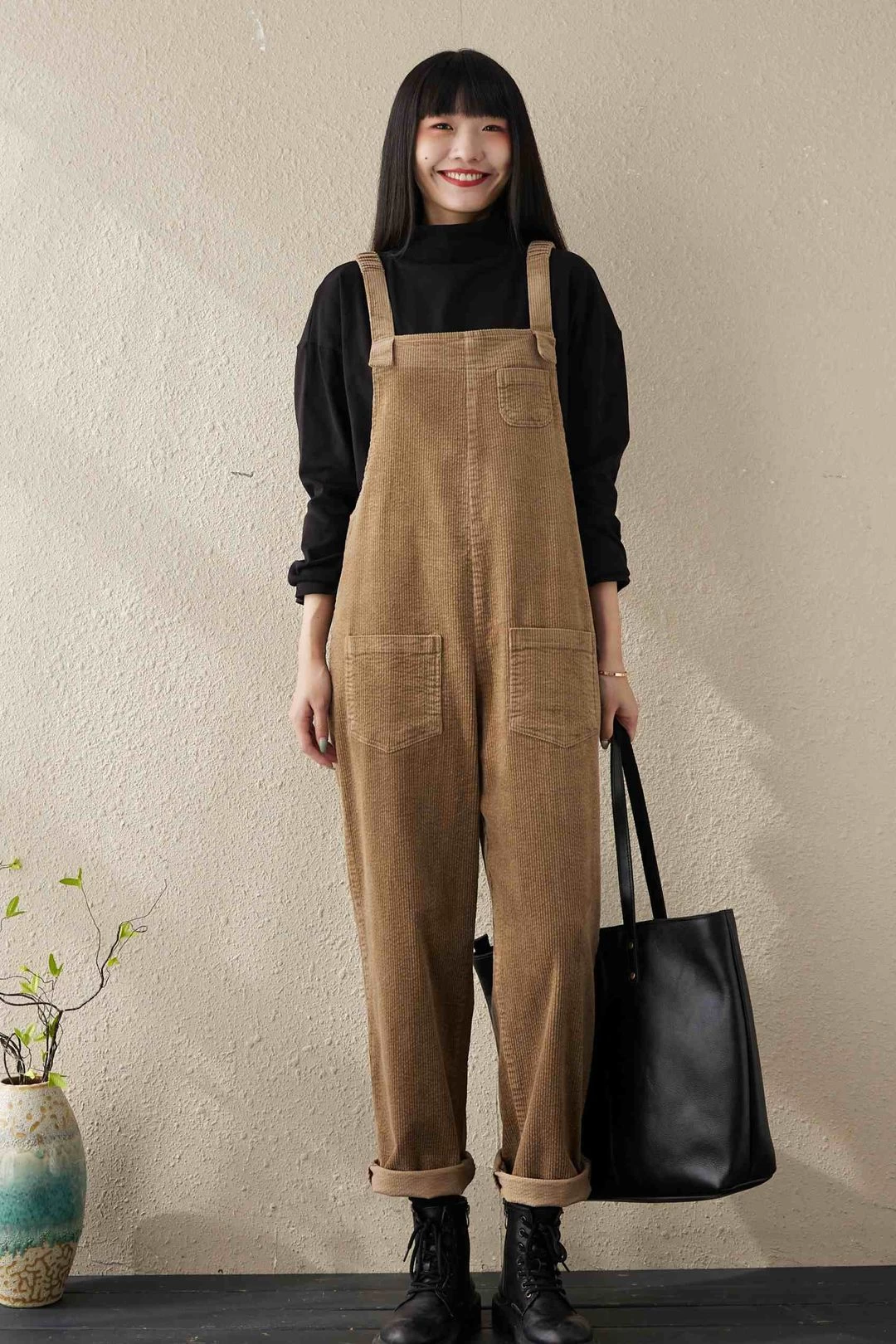 Wide Leg Corduroy Overalls For Women/Casual Jumpsuit/Winter and Spring Jumpsuit, Blue and Beige color Overalls fit Summer
