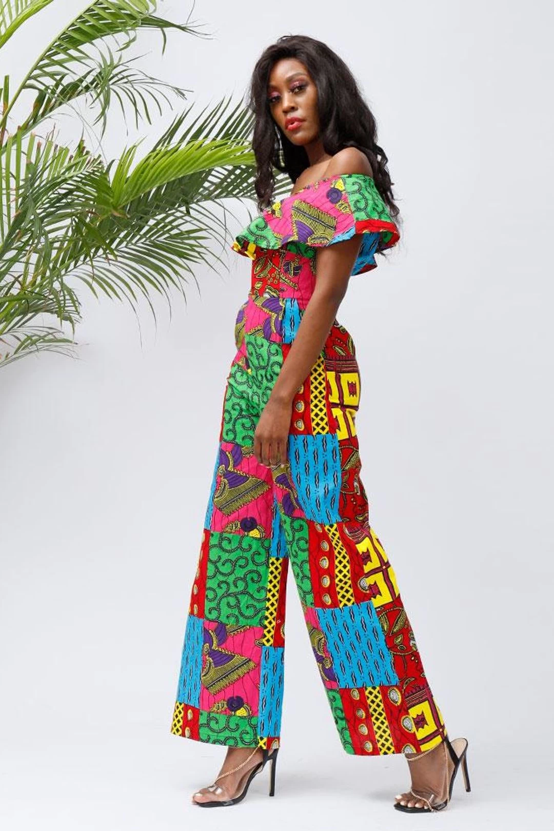 Women Jumpsuit Ruffle Off-Shoulder Long Ankara Jumpsuit