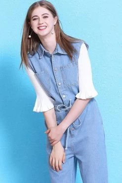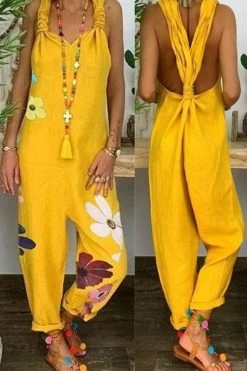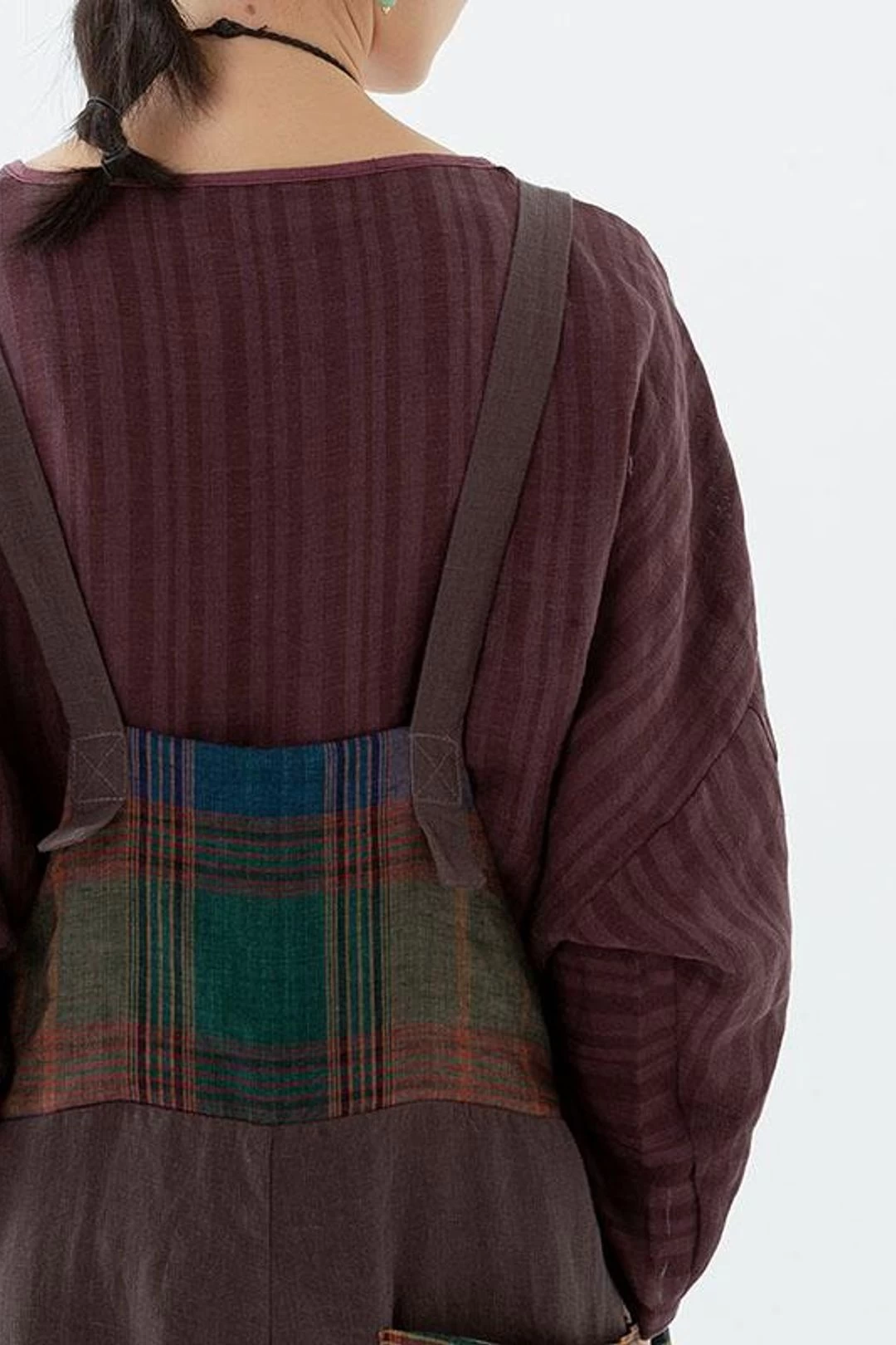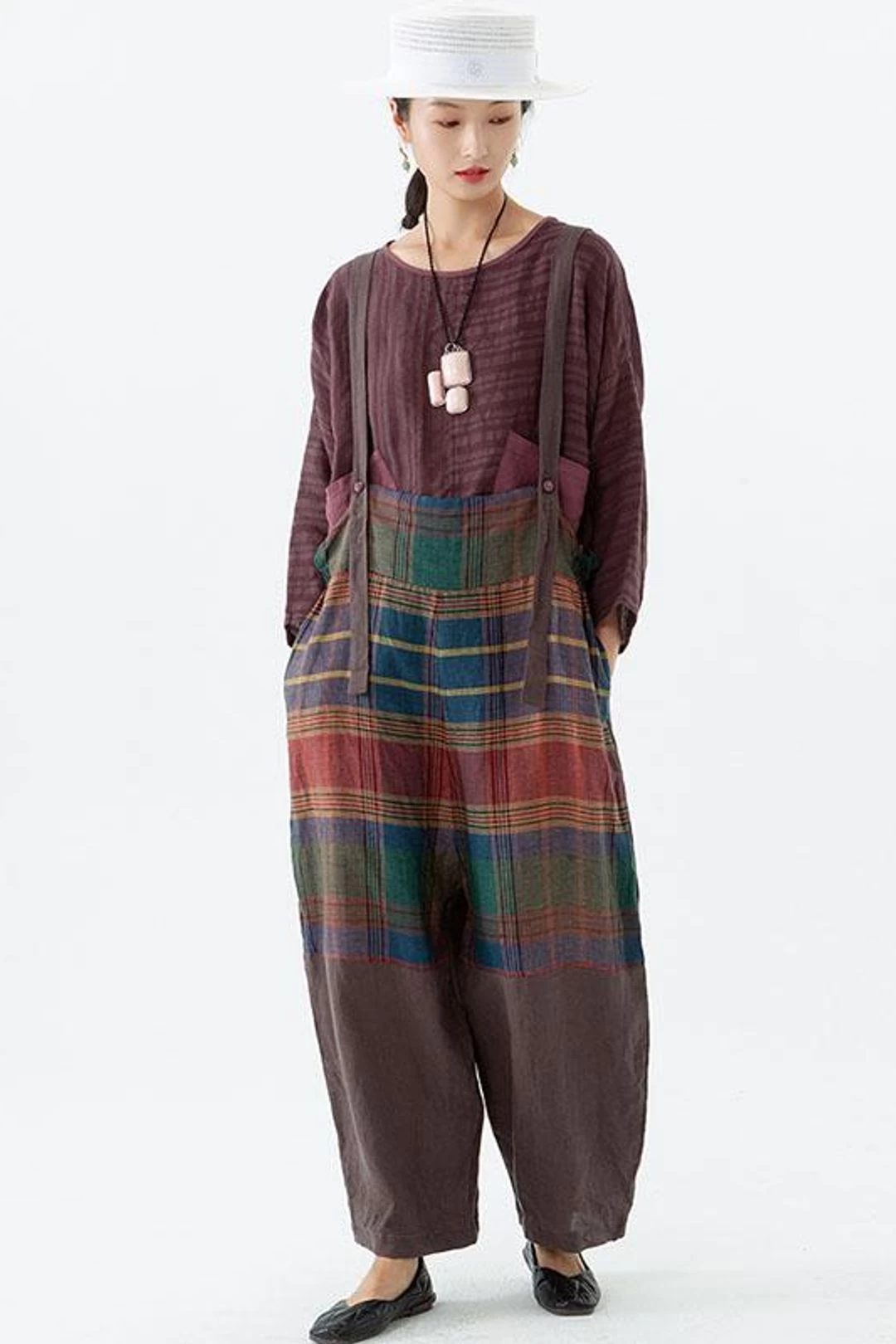 Women Plaid Pocket Linen Loose Button Casual Jumpsuits Dungarees