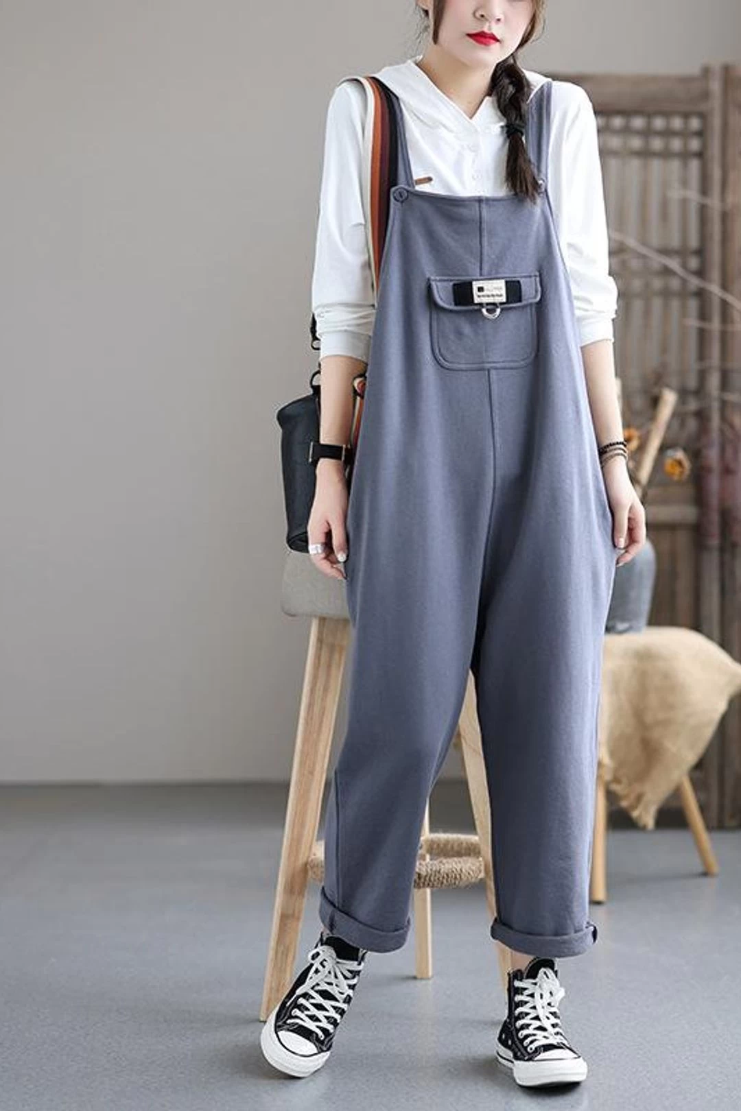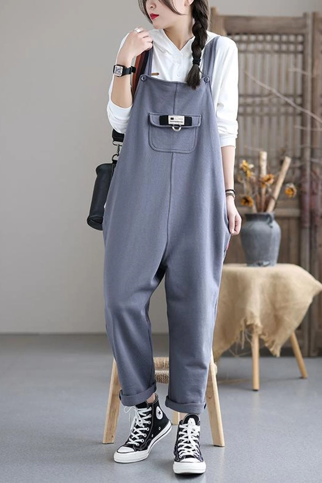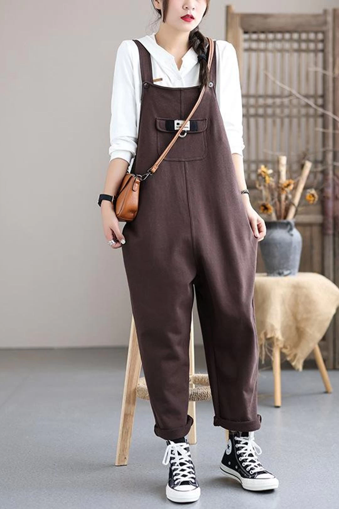 Women Solid Color Button Pocket Casual Jumpsuits Dungarees
